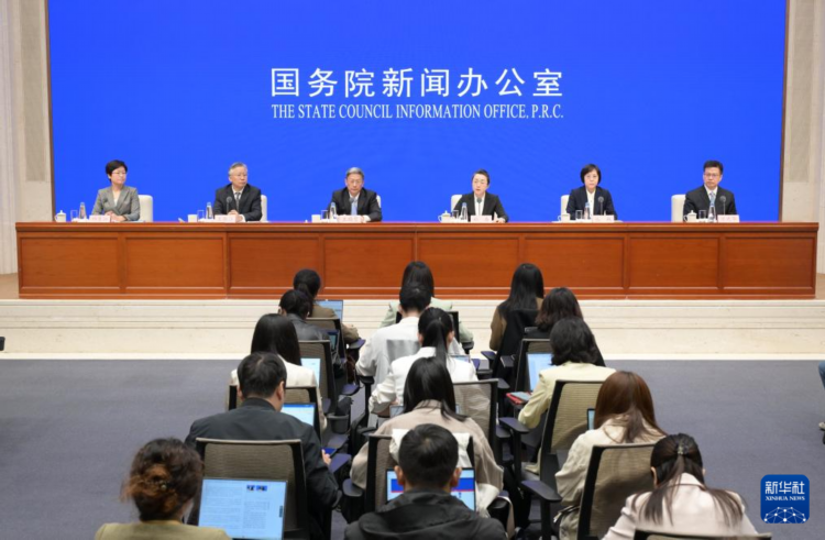 5月8日,国务院新闻办公室在北京举行新闻发布会,全国人大常委会法工委副主任王瑞贺、国家发展改革委副主任郑备、司法部副部长王振江、金融监督管理总局副局长丛林、全国工商联副主席方光华介绍《中华人民共和国民营经济促进法》有关情况,并答记者问。新华社记者 李贺 摄