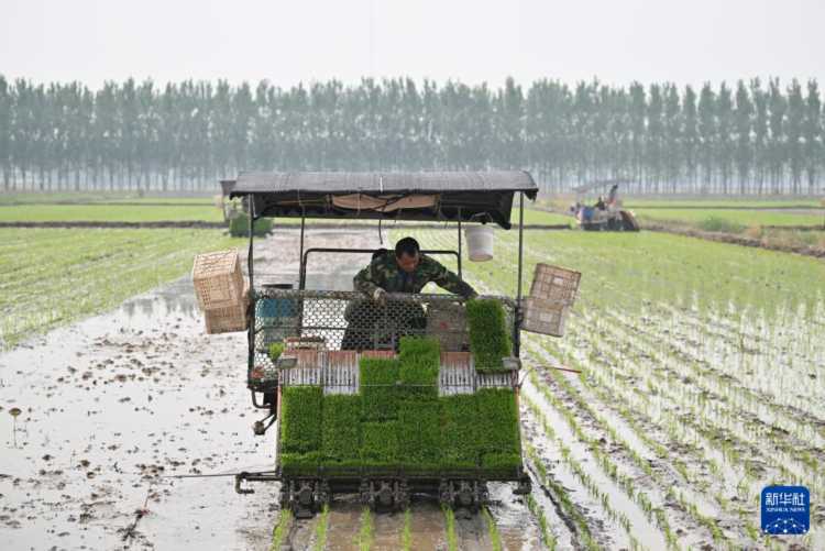 时下正值天津小站稻插秧季,天津市宁河区约20万亩小站稻大规模机械化插秧陆续开始,为秋后丰收丰产打下基础。