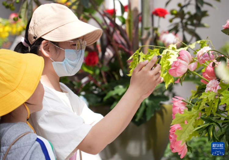 5月11日,游客在第九届国际月季大会的“花YOUNG生活节”活动现场游玩。