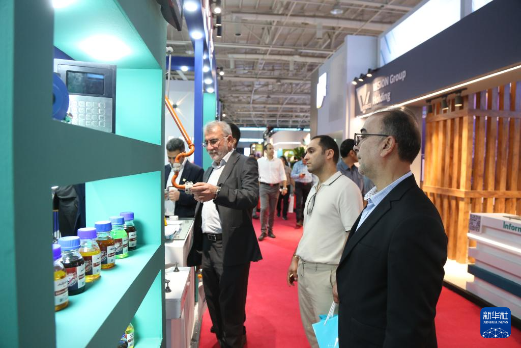 5月8日,在伊朗德黑兰,人们参加2025年伊朗石油展。 第29届国际石油、天然气、炼油和石化展览会(2025伊朗石油展)8日在伊朗首都德黑兰开幕。 新华社记者 沙达提 摄