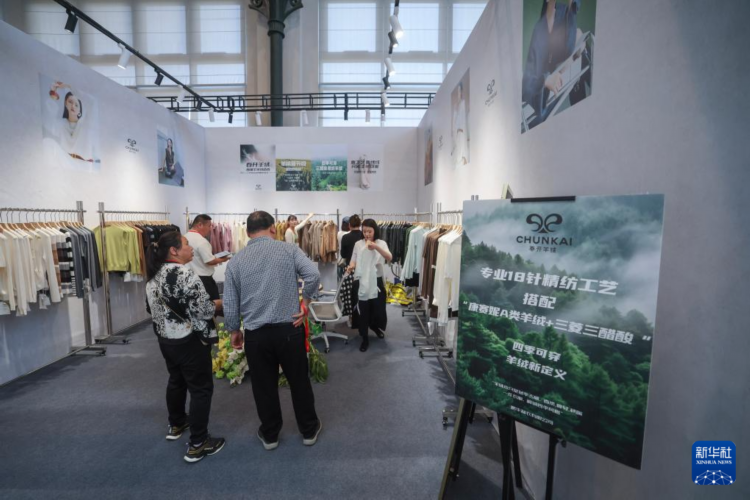 5月12日拍摄的“濮院集·秋韵共织”订货交易会,共有30多家濮院本土针织品牌厂商参加。