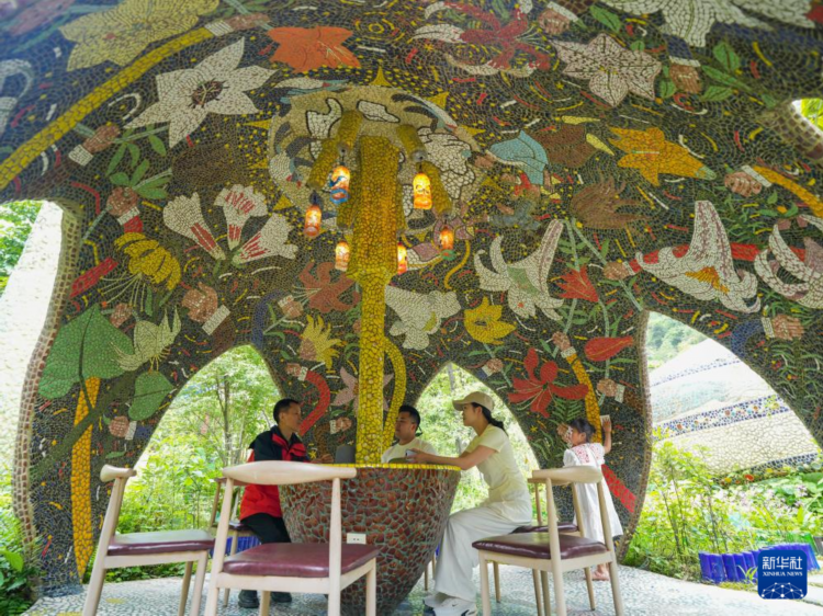 走进植物园,除了各式各样的植物,以酒瓶碎片、马赛克为原料设计构成的植物雕像和壁画随处可见,这些艺术装置在社交媒体上广泛传播,吸引了不少游客慕名而来拍照打卡。