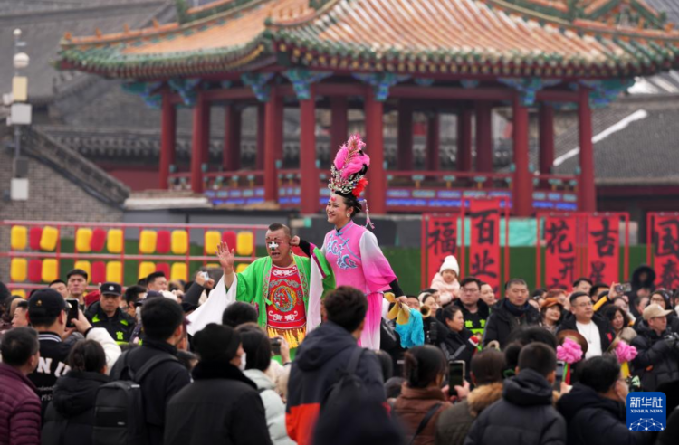 2024年2月24日,演员在沈阳故宫的大政殿前广场表演辽宁海城高跷。沈阳故宫连续多年举办“沈阳故宫过大年”大型文化系列活动。