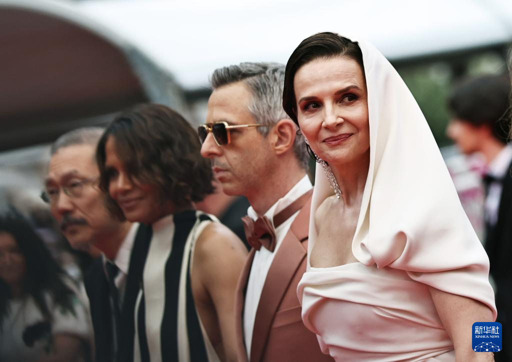 5月13日,在法国戛纳举行的第78届戛纳国际电影节上,主竞赛单元评委会主席朱丽叶·比诺什(右一)携评委亮相开幕式红毯。