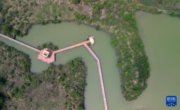 这是黄河三角洲国家级自然保护区内的湿地(5月14日摄,无人机照片)。