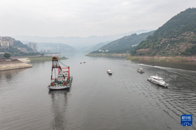 这是5月15日在重庆市奉节县拍摄的三峡库区地方航道危岩地灾应急实战演练现场(无人机照片)。