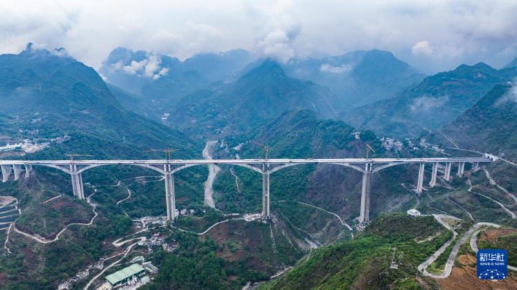 这是顺利实现合龙的纳晴高速六枝特大桥(5月15日摄,无人机照片)。