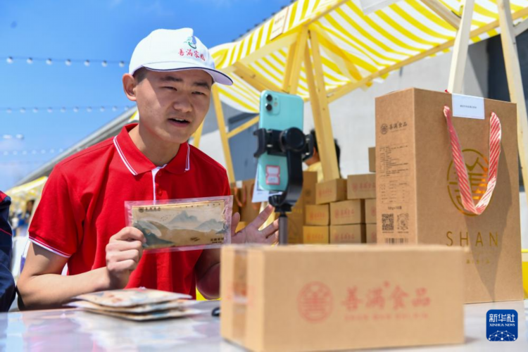 5月15日,在吉林省长春市九台区善满家园残障人综合服务中心,残障员工在网络直播间向网友介绍产品。
