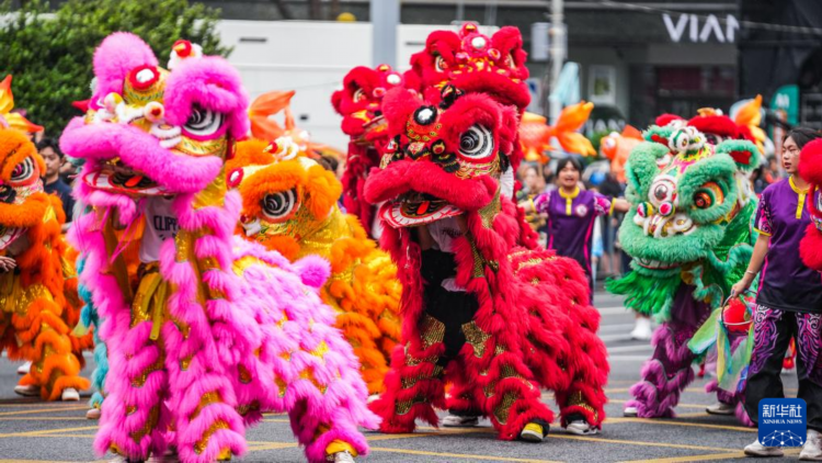 5月18日,民俗文化方阵的表演队伍在进行巡游。