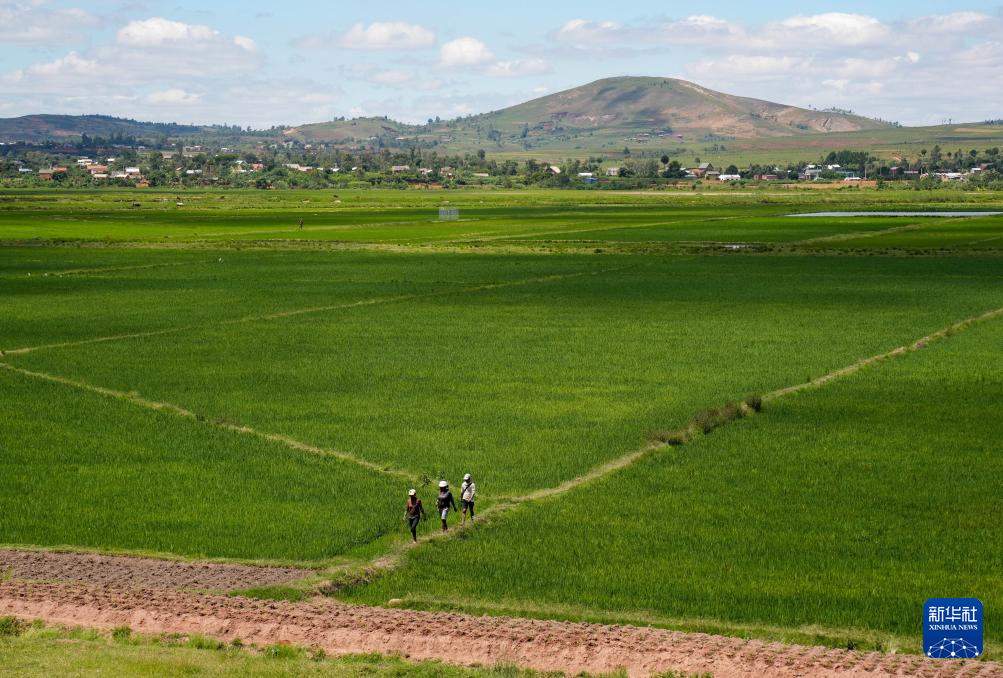 3月26日,农民走在马达加斯加马希齐镇的中国杂交水稻高产示范基地示范田间。 新华社记者 李亚辉 摄