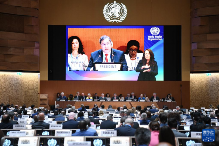 这是5月19日在瑞士日内瓦拍摄的第78届世界卫生大会现场。新华社记者 连漪 摄