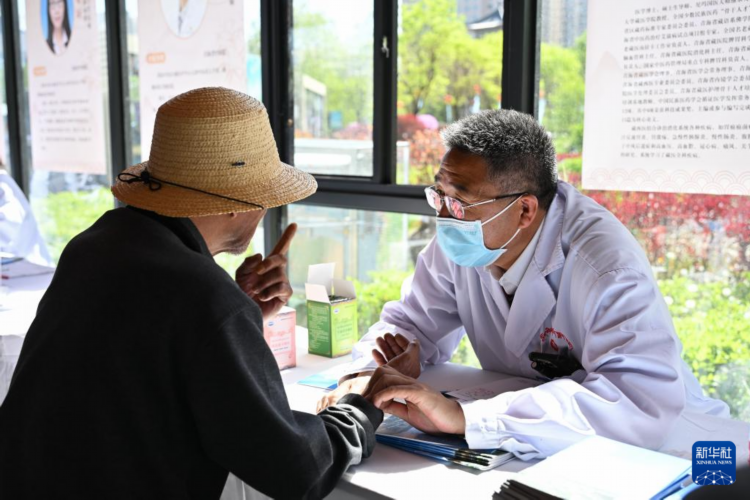 5月19日,医护人员在青海文化旅游节中(藏)医体验馆为市民义诊。