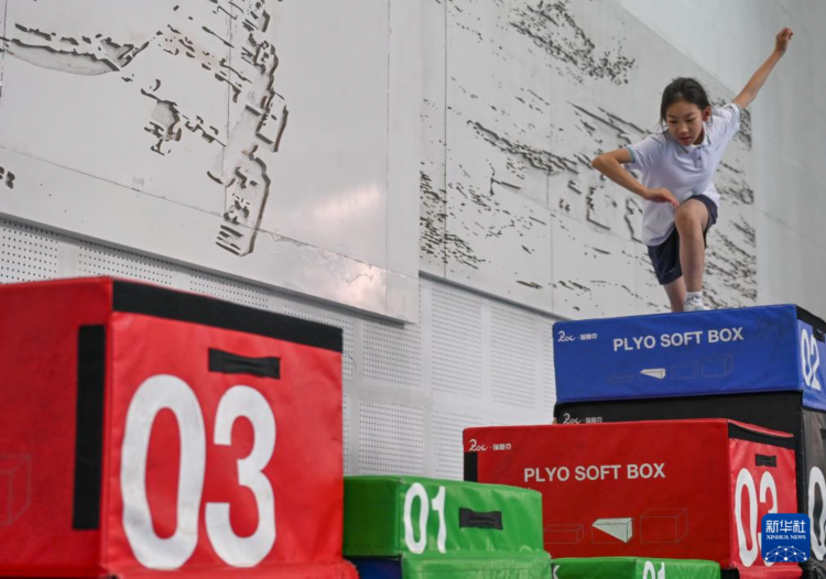 5月19日,重庆市渝中区天地人和街小学,一名学生参加跑酷大课间活动。