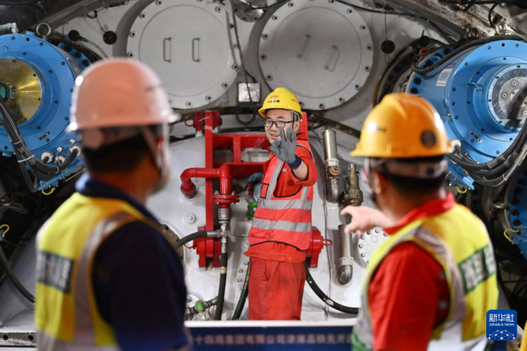 5月19日,中铁十四局的建设者在盾构机施工现场工作。