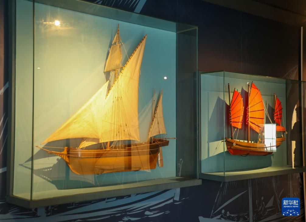这是5月17日在摩洛哥丹吉尔的伊本·白图泰纪念馆内拍摄的帆船模型。新华社记者 霍晶 摄