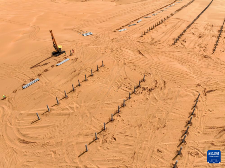 近日,内蒙古鄂尔多斯市达拉特旗境内的巴蒲线实现全线贯通。这条崭新的柏油公路横亘在库布其沙漠腹地,道路两边,工人们有序推进治沙工程作业,切割沙柳条、栽植立式网格沙障,工程机械推平沙丘,以备光伏装机。