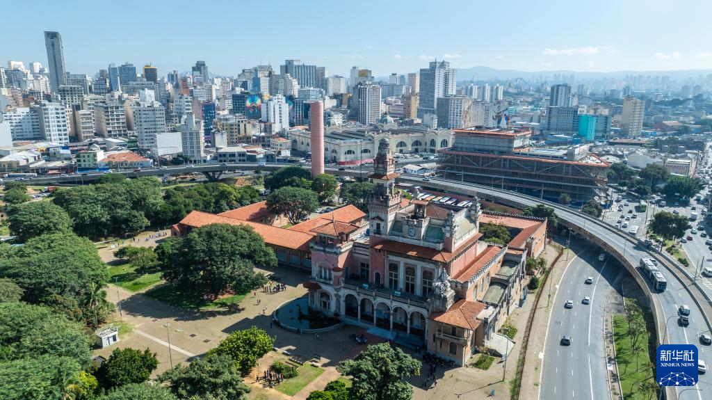这是5月15日在巴西圣保罗市中心拍摄的卡塔文图博物馆(无人机照片)。
