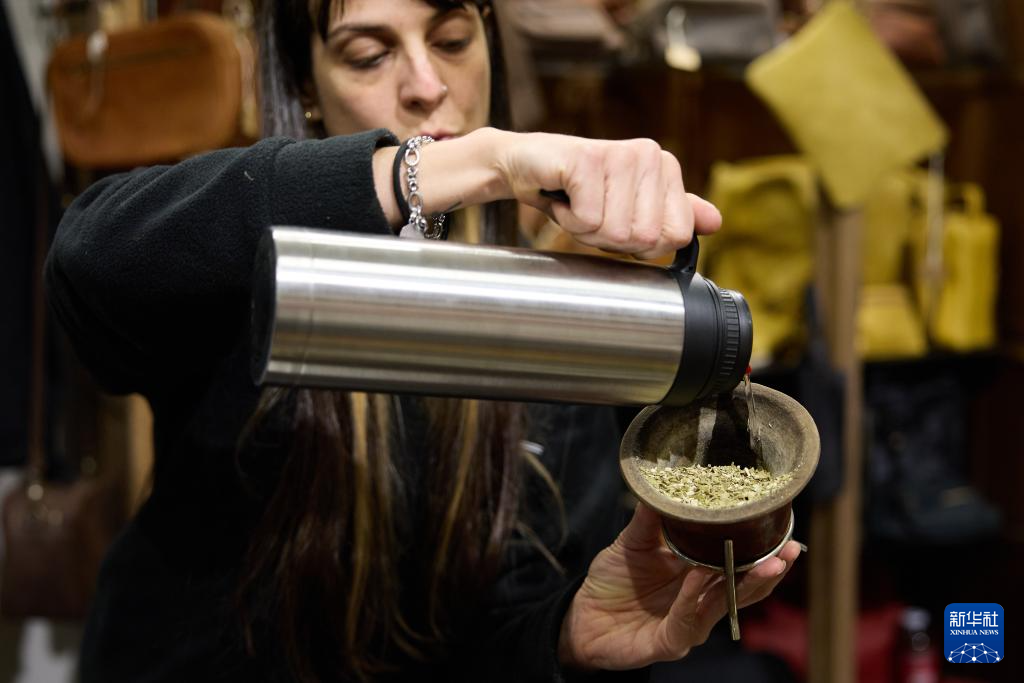 5月20日,一名当地居民在阿根廷布宜诺斯艾利斯一家店铺里冲泡马黛茶。