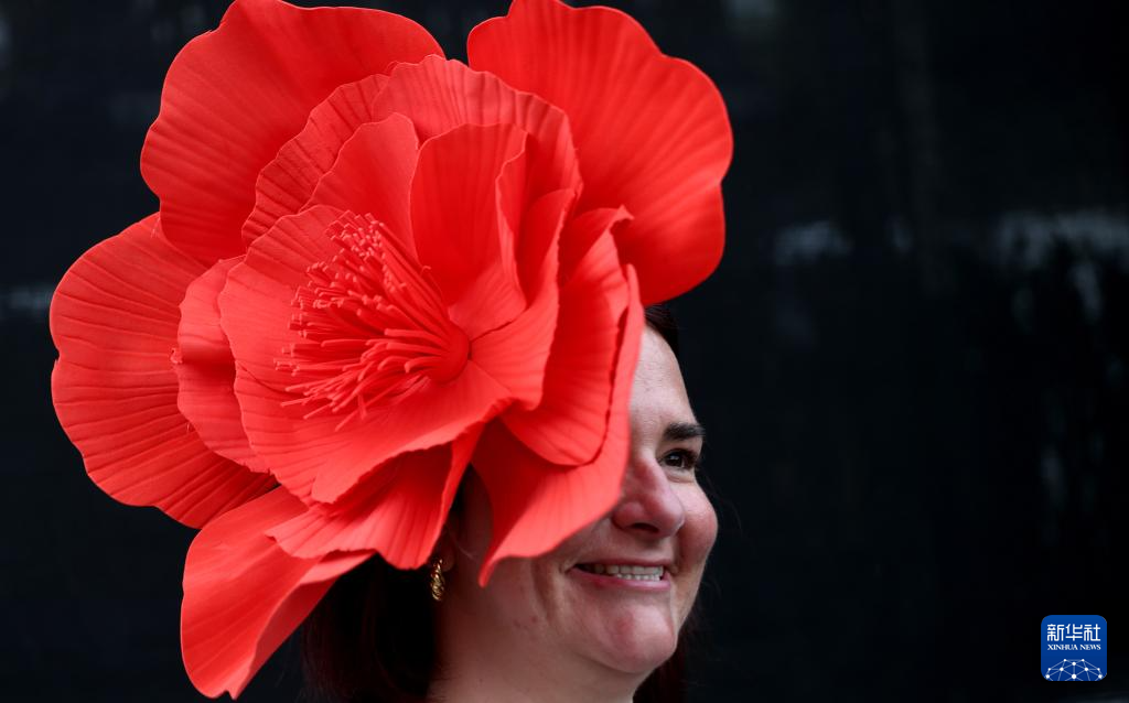 5月20日,一名戴着花饰的女子在英国伦敦参加切尔西花展。