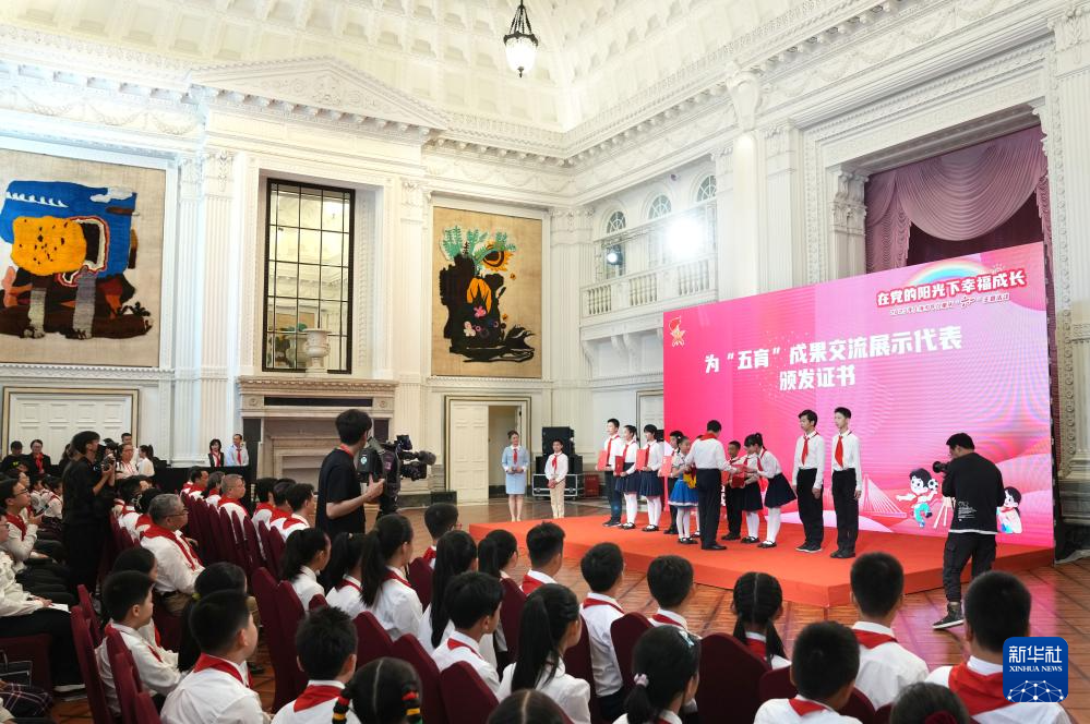 当日,“在党的阳光下幸福成长”上海少年儿童庆“六一”主题活动在位于上海的中国福利会少年宫举行。活动现场为上海市“五育”成果交流展示代表颁发证书,为新入队的少先队员授少先队员证,以激励广大少先队员和少先队集体坚持德智体美劳全面发展。