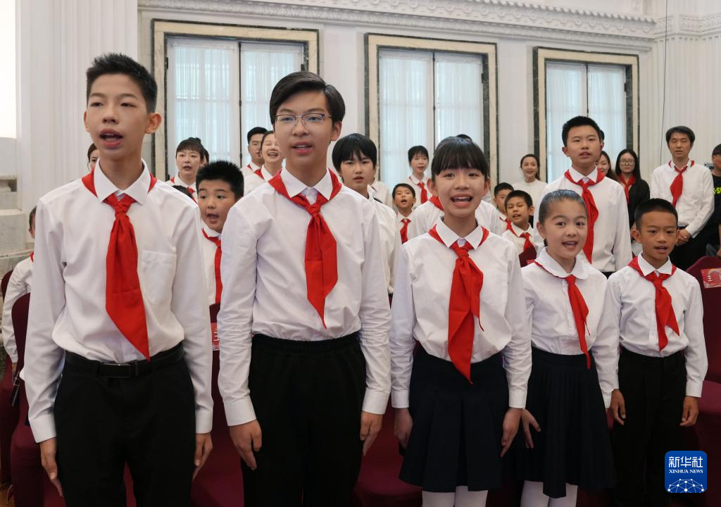 5月22日,少先队员齐唱中国少年先锋队队歌。