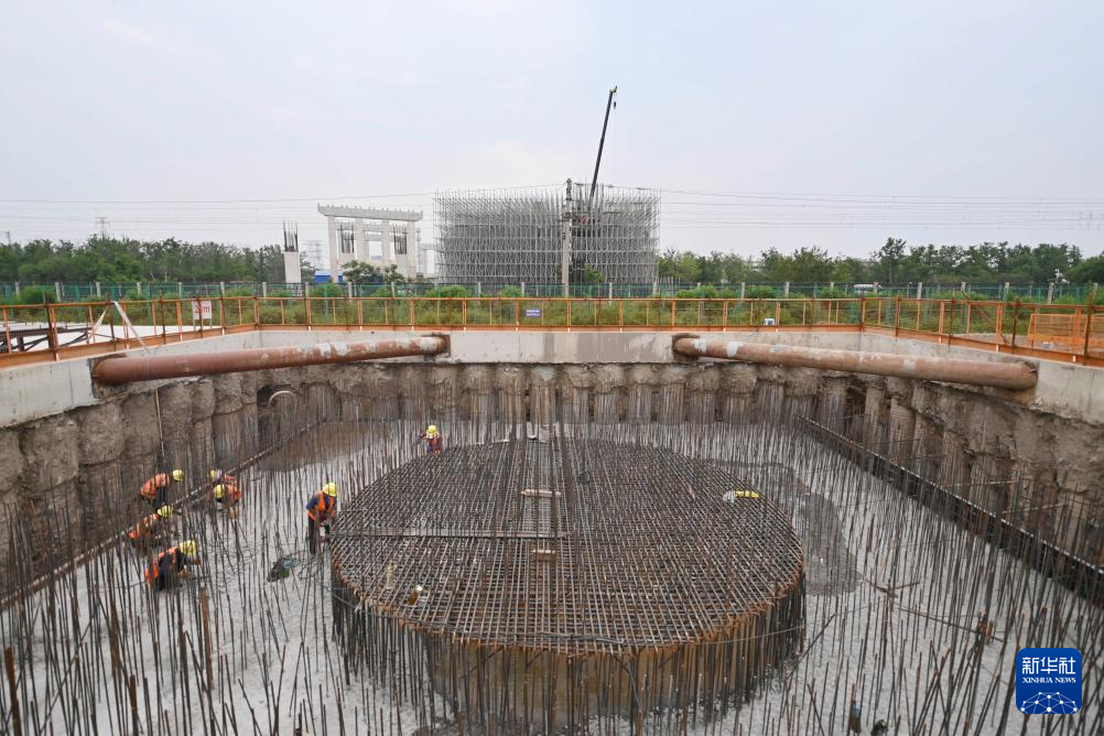 初夏时节,天津港集疏运专用货运通道工程第2标段项目施工现场一派繁忙,中铁十八局的建设者抢抓有利天气,加快施工进度。