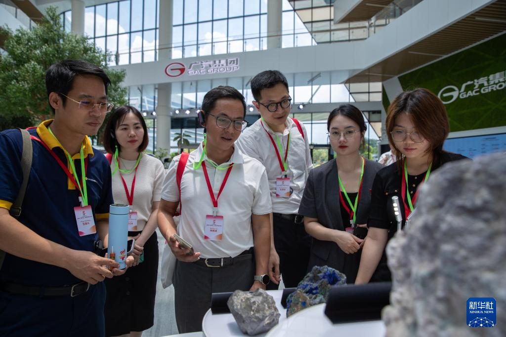 5月21日,越南青年在广州参观广汽研究院的电池材料展区。