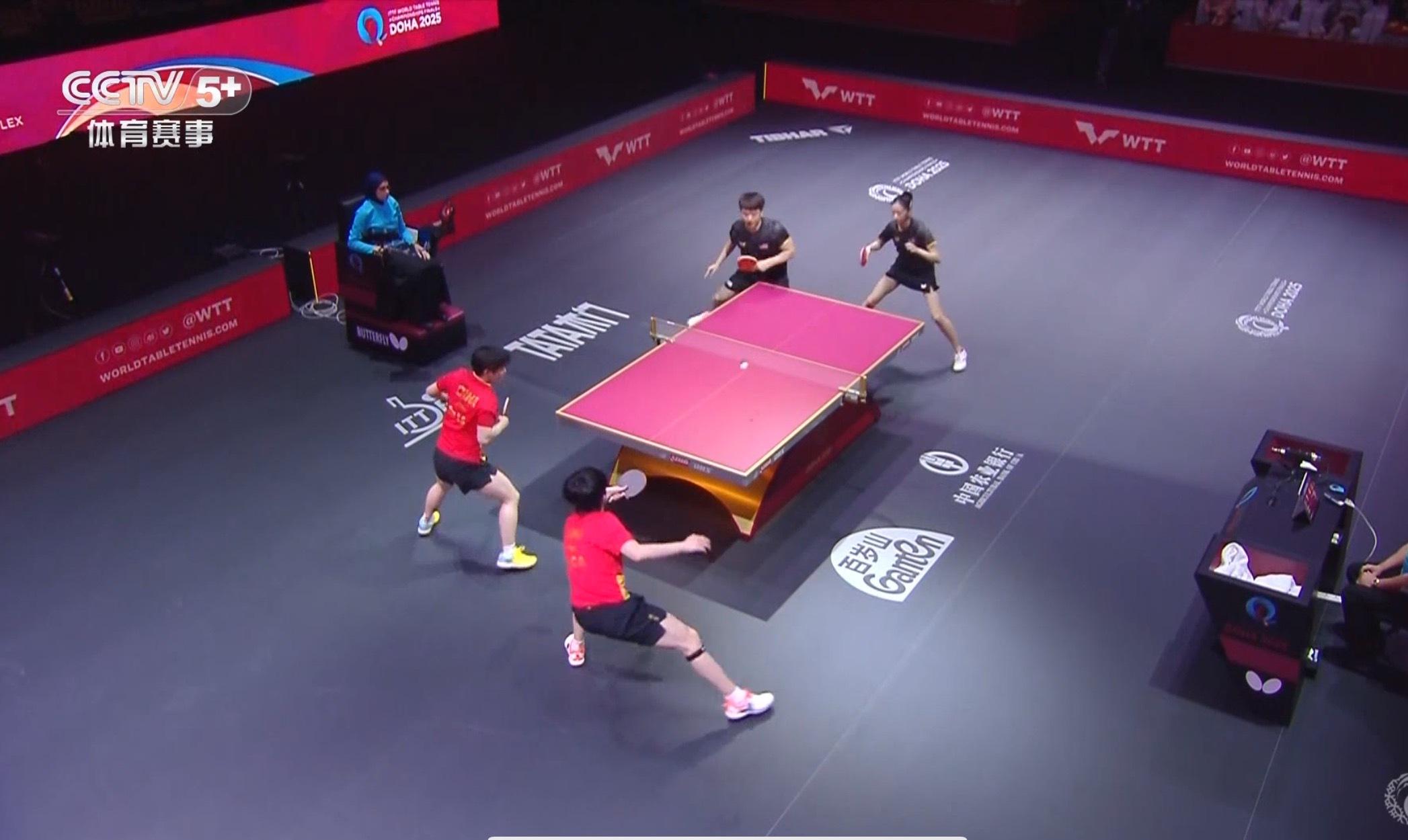 在混双首轮,王楚钦/孙颖莎3-0战胜美国组合,晋级混双32强。