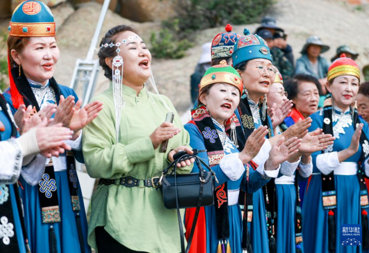 5月24日,在新疆阿勒泰市汗德尕特蒙古族乡,演员在活动现场唱歌。
