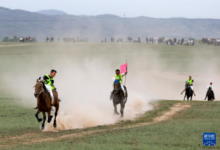 5月24日,在新疆阿勒泰市汗德尕特蒙古族乡,选手在参加骑马比赛。