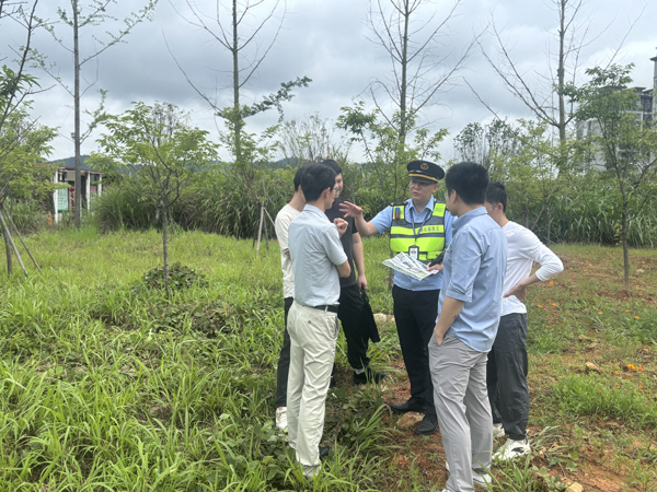 现场,执法人员与多方深入沟通,详细了解项目用途——该泵站旨在解决云谷居民生活用水问题,关乎民生福祉。为确保项目依法依规推进,执法人员一方面向企业及施工设计单位耐心宣讲高速公路建筑控制区相关法律法规,明确建设规范与安全标准;另一方面通过现场勘验,精准标注控制区范围并插上醒目标记,为设计单位提供直观参考依据。此举既避免了企业因规划失误导致的返工成本,又保障了高速公路基础设施安全,实现了执法监管与企业需求的“双向奔赴”。