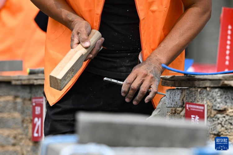 5月26日,选手在泥瓦作文物修复师比赛现场进行比赛。