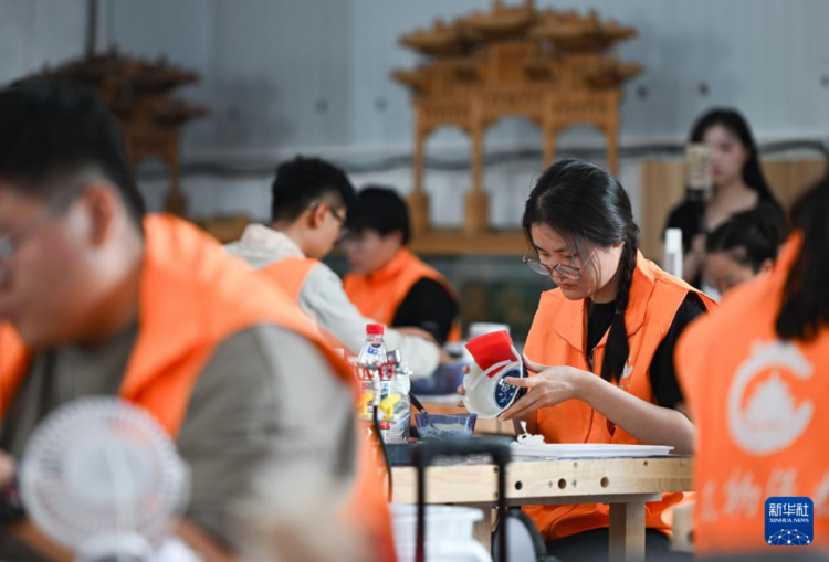 这是5月26日拍摄的陶瓷文物修复师比赛现场。