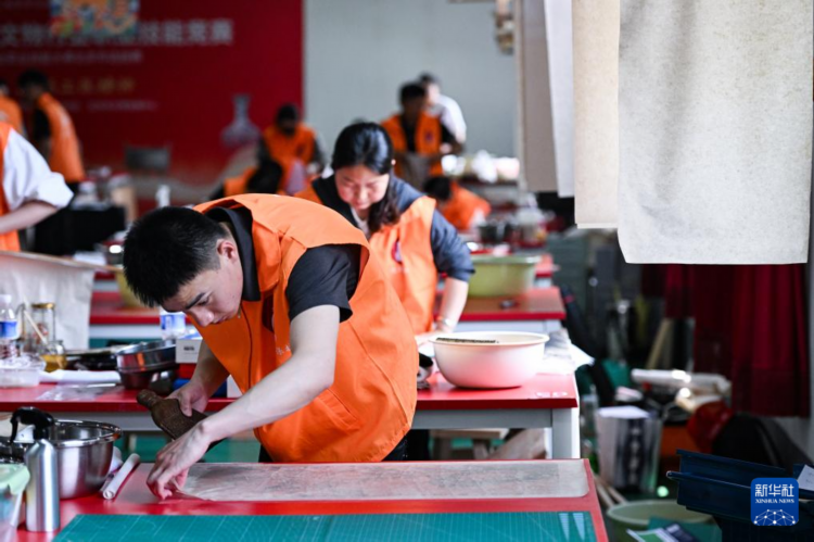 5月26日,选手在纸张书画文物修复师比赛现场进行比赛。