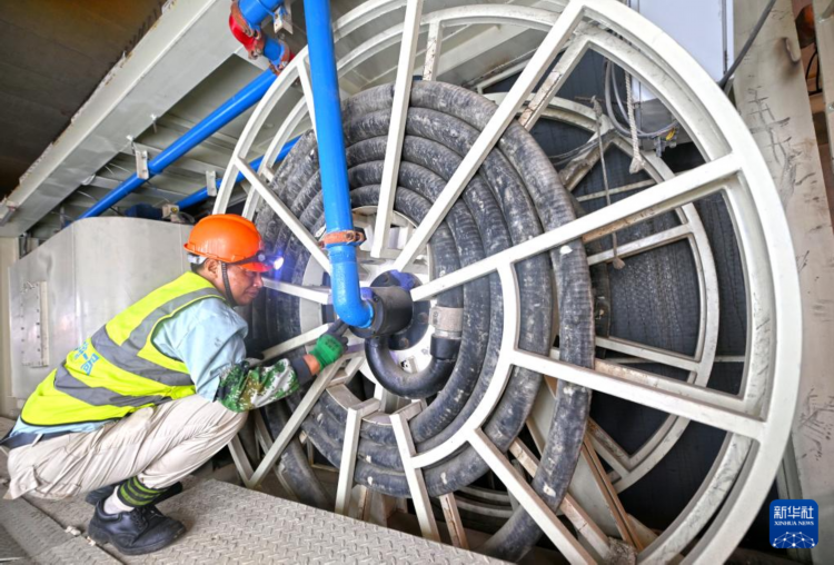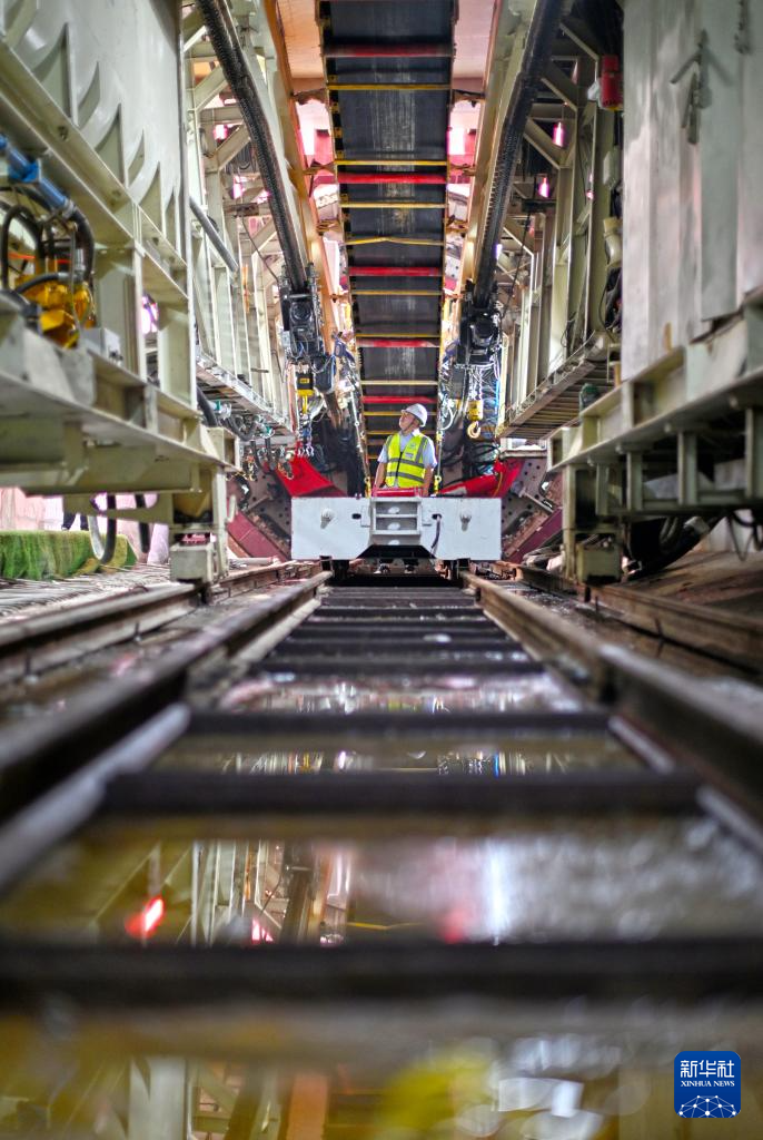 5月26日,施工人员在“青年先锋号”盾构机始发前检查设备。
