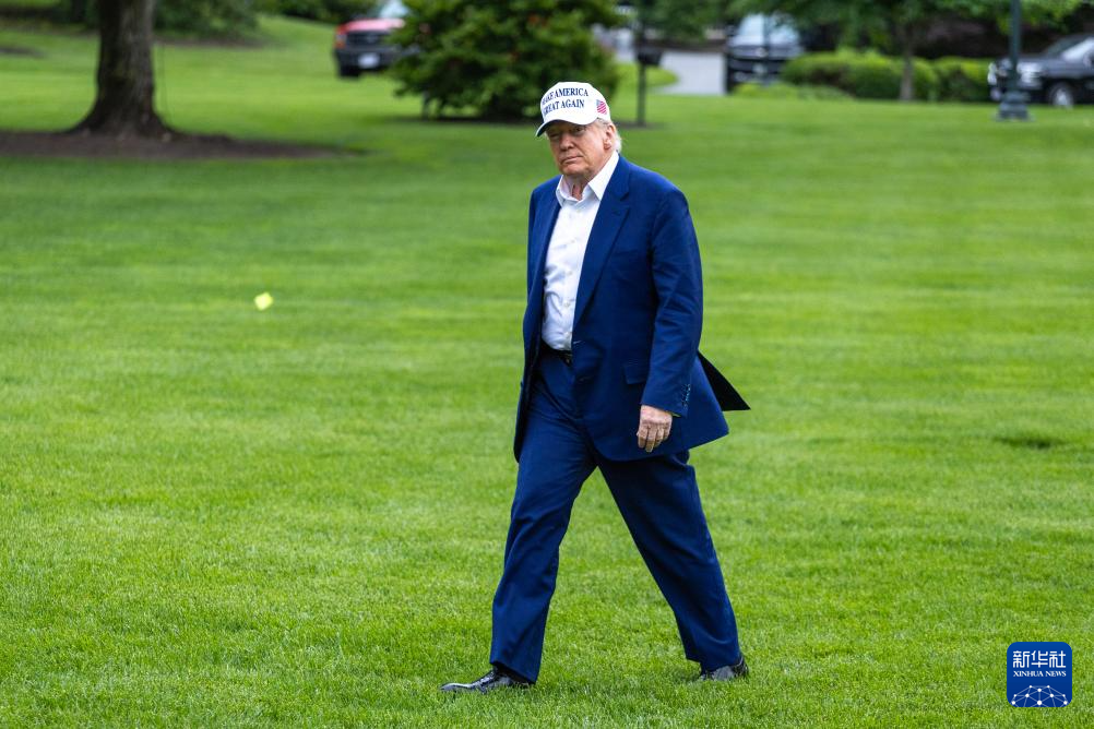 5月25日,美国总统特朗普乘直升机返回首都华盛顿白宫。