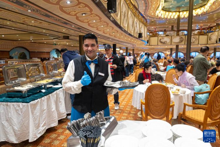 5月27日,工作人员在“爱达·地中海”号上为游客提供服务。