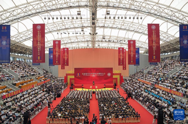 5月27日拍摄的纪念复旦大学建校120周年大会现场。