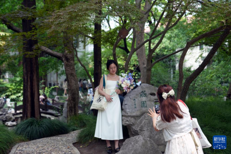 返校的校友在复旦大学校园内留影(5月24日摄)。