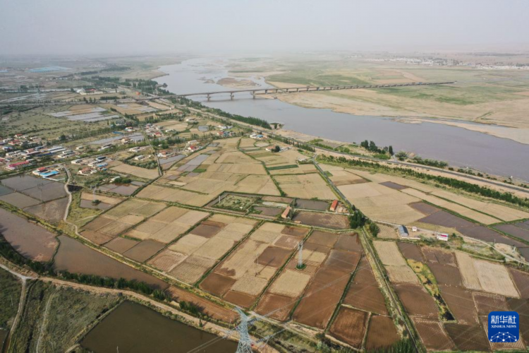 这是5月28日拍摄的巴彦淖尔市磴口县境内的农田(无人机照片)。