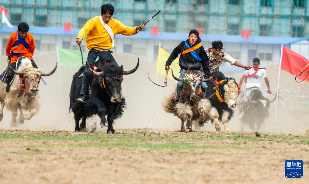 5月29日,拉萨市达孜区举办2025年首届赛牦牛比赛,132头体格健硕的牦牛在骑手驾驭下,在达孜区德庆镇桑珠林村的山沟里竞速争先,吸引众多农牧民群众前来观看。