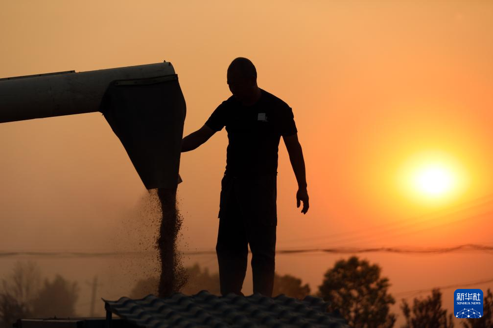 5月28日,河南省平顶山市宝丰县闹店镇东军营村村民在收获小麦。