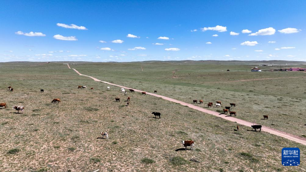 5月31日在格根塔拉草原拍摄的牛群(无人机照片)。