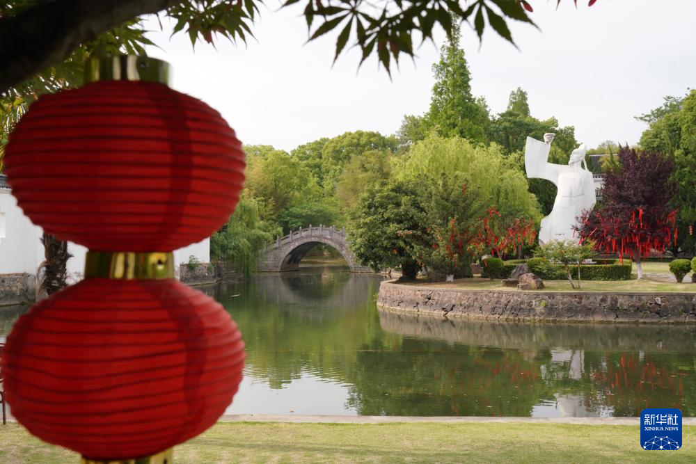 5月13日在安徽省马鞍山市当涂县拍摄的李白文化园和园中的李白雕像。