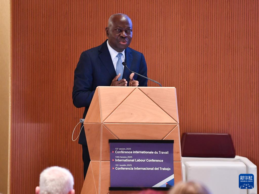 6月2日,国际劳工组织总干事洪博在瑞士日内瓦举行的国际劳工大会上讲话。
