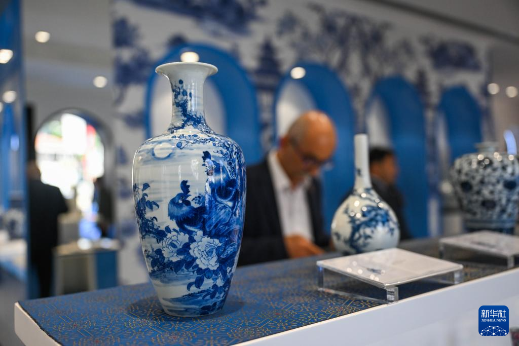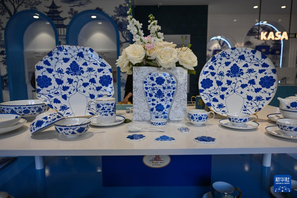 这是5月31日在土耳其伊斯坦布尔景德镇陶瓷官方旗舰店内拍摄的中国瓷器。