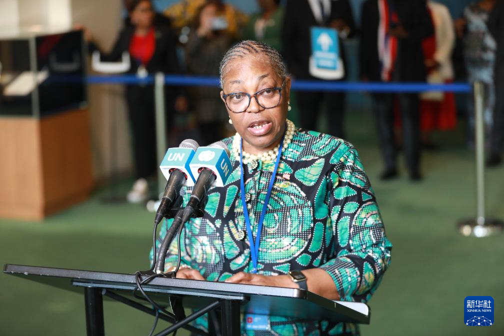 6月3日,在位于纽约的联合国总部,利比里亚副外长格雷在利比里亚当选联合国安理会非常任理事国后讲话。新华社记者 谢锷 摄