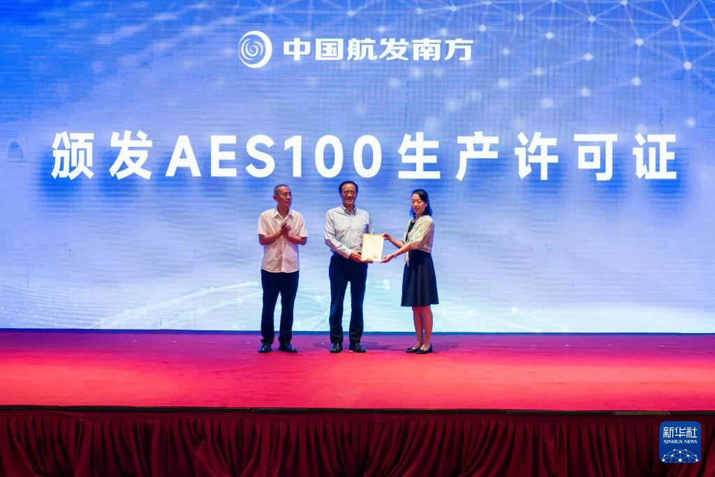 6月5日,在湖南省株洲市举办的AES100发动机研制工作总结会上,AES100发动机获颁生产许可证。新华社记者 陈思汗 摄