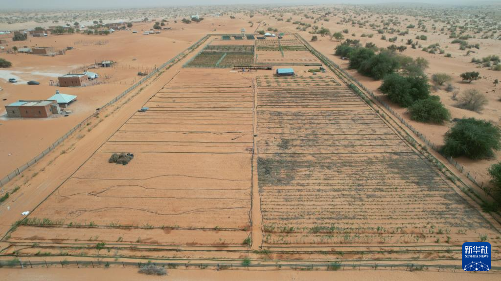 这是5月22日拍摄的位于毛里塔尼亚西部特拉扎区比尔·巴尔卡村的中非绿色技术公园(无人机照片)。新华社记者 司源 摄