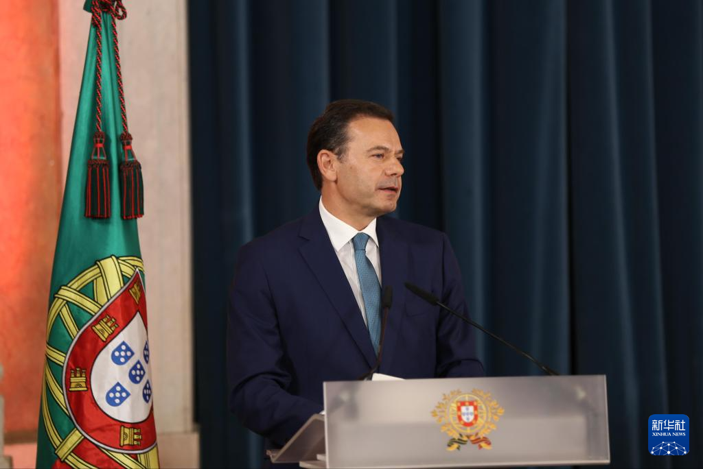 6月5日,在葡萄牙里斯本阿茹达宫,蒙特内格罗在新政府就职仪式上致辞。新华社记者 荀伟 摄